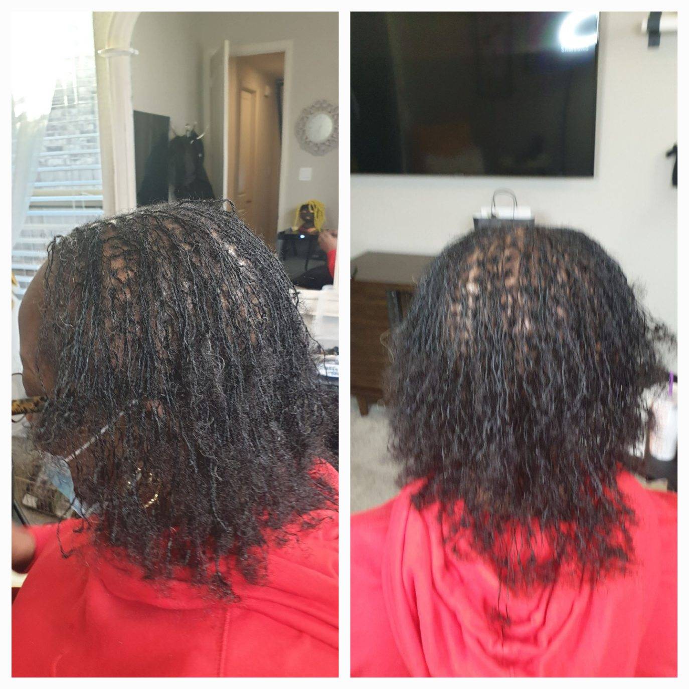 Just had my micrloc installation completed today. I wish I could give more stars….She is an awesome loctician!!!! She took her time with my hair, very knowledgeable and made me feel comfortable. Her hands are truly blessed. Im looking forward to many more visits. Thank you!!!