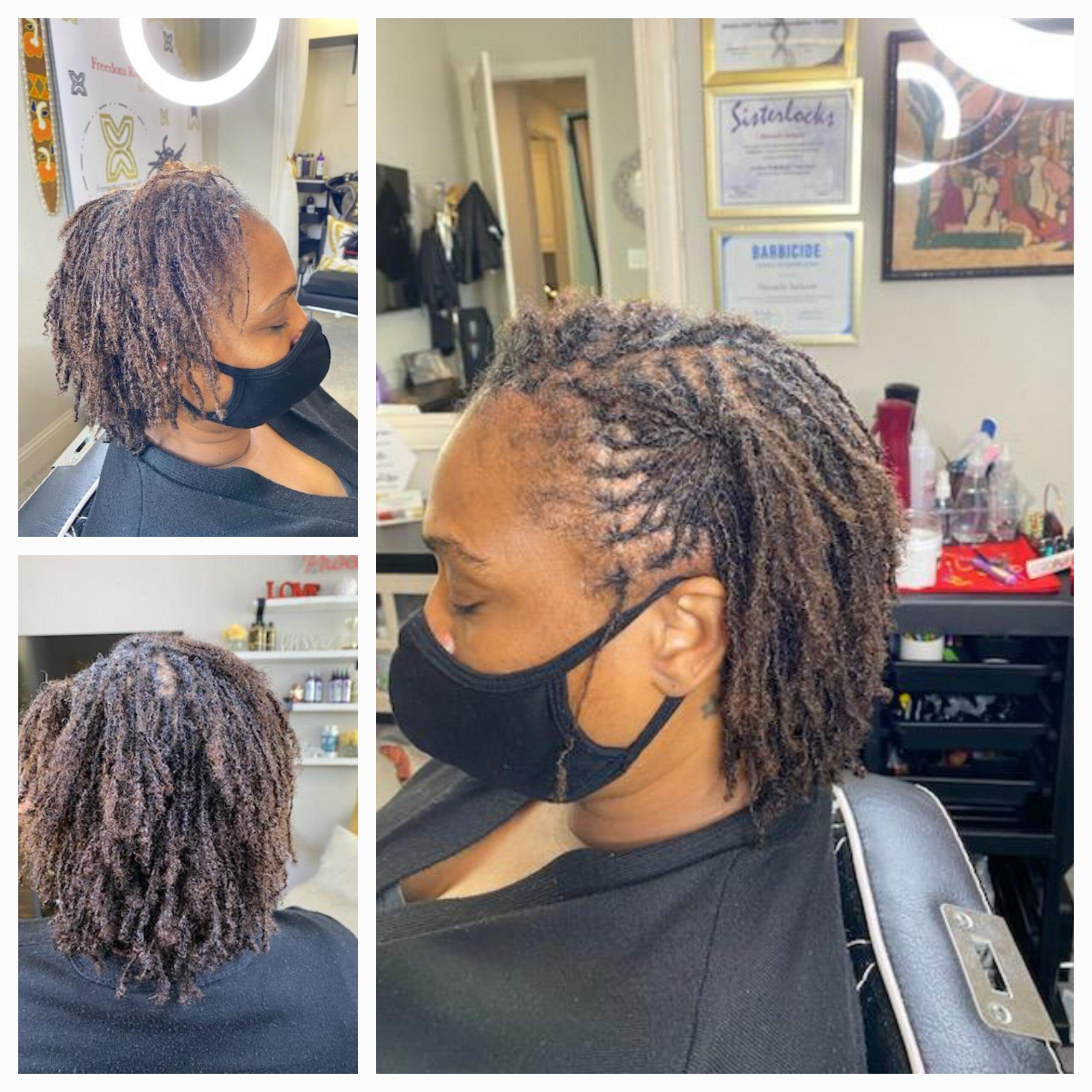 I have been natural for eight years and became a part of the Sisterlocks® community because I wanted Freedom, versatility, coupled with my love for locks. It was important that I immerse myself in this natural Lock Journey by completing the extensive Sisterlocks® course. I have a desire to pass on this passion to each individual with care by spreading love and attention to each Lock Friend by giving positive energy and knowledge to help create beautiful Healthy Locks. Freedom Rootz Locks Studio has been designed to humbly start and support on your Sisterlocks® Journey.